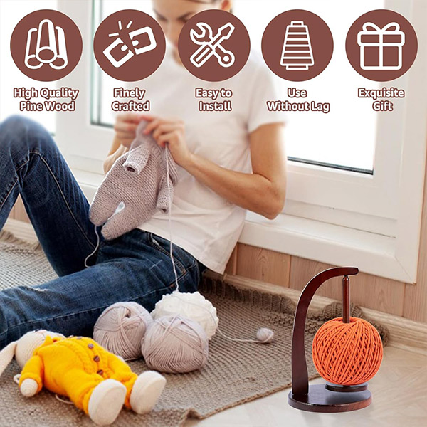 Dzięki płynnemu obrotowi i solidnej konstrukcji, ten uchwyt na wełnę sprawia, że robienie na drutach jest bezproblemowe.