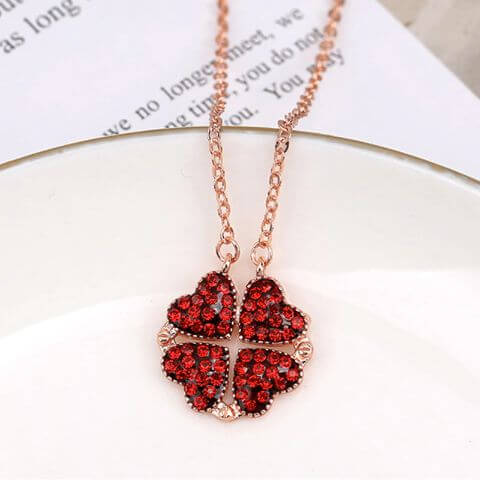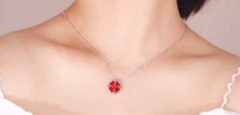 Naszyjnik nie tylko łatwoprzekształcić z czterolistnejkoniczynyw rządserc, jego każda strona ma innykolor – jedna jest niebieska, a druga czerwona!